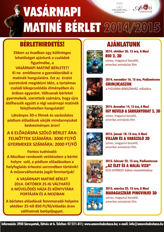 Vasárnapi matiné bérlet A Moziban - Rio 2. (3D)